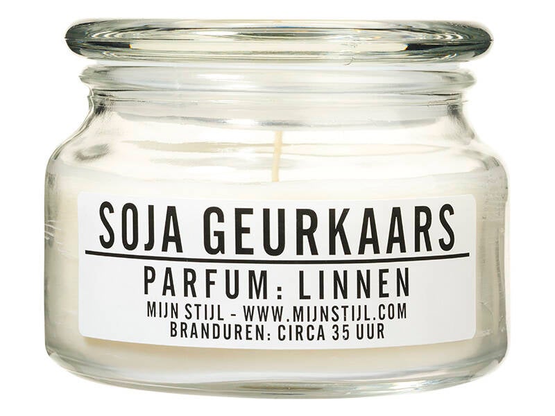 Geurkaars pot/glas Patchouli. 10x8 cm branduren circa 30 uur, soja-basis.